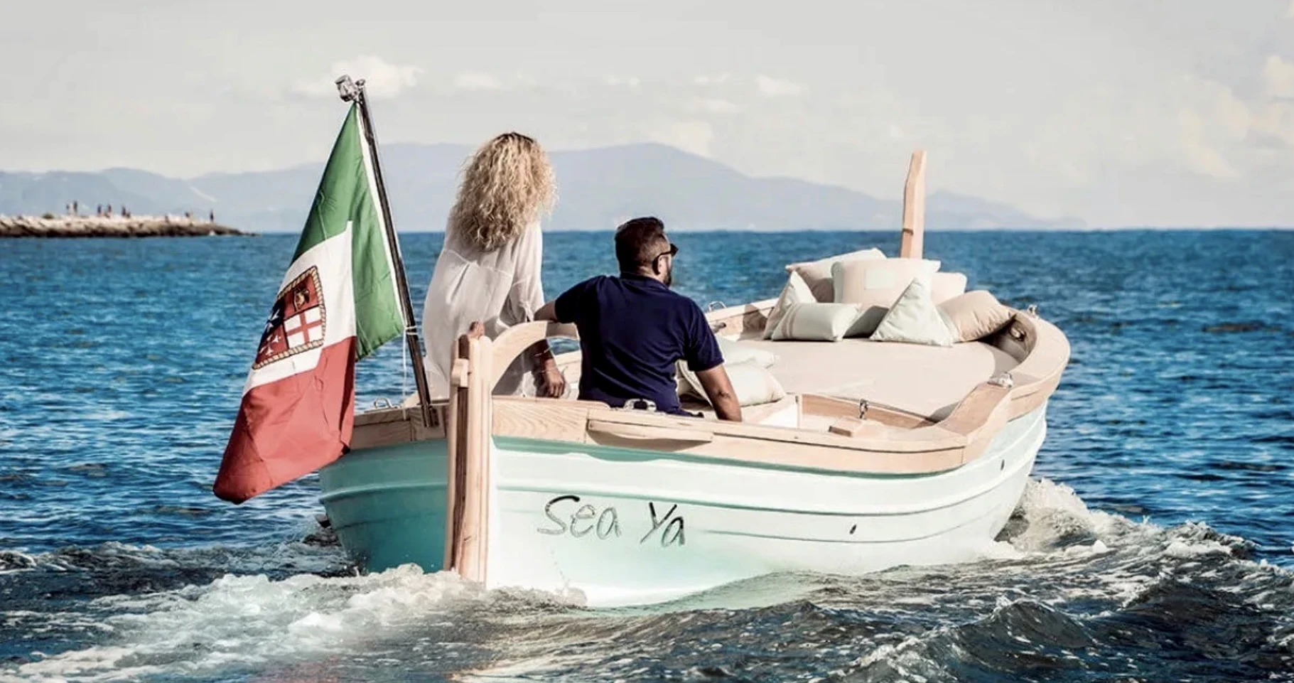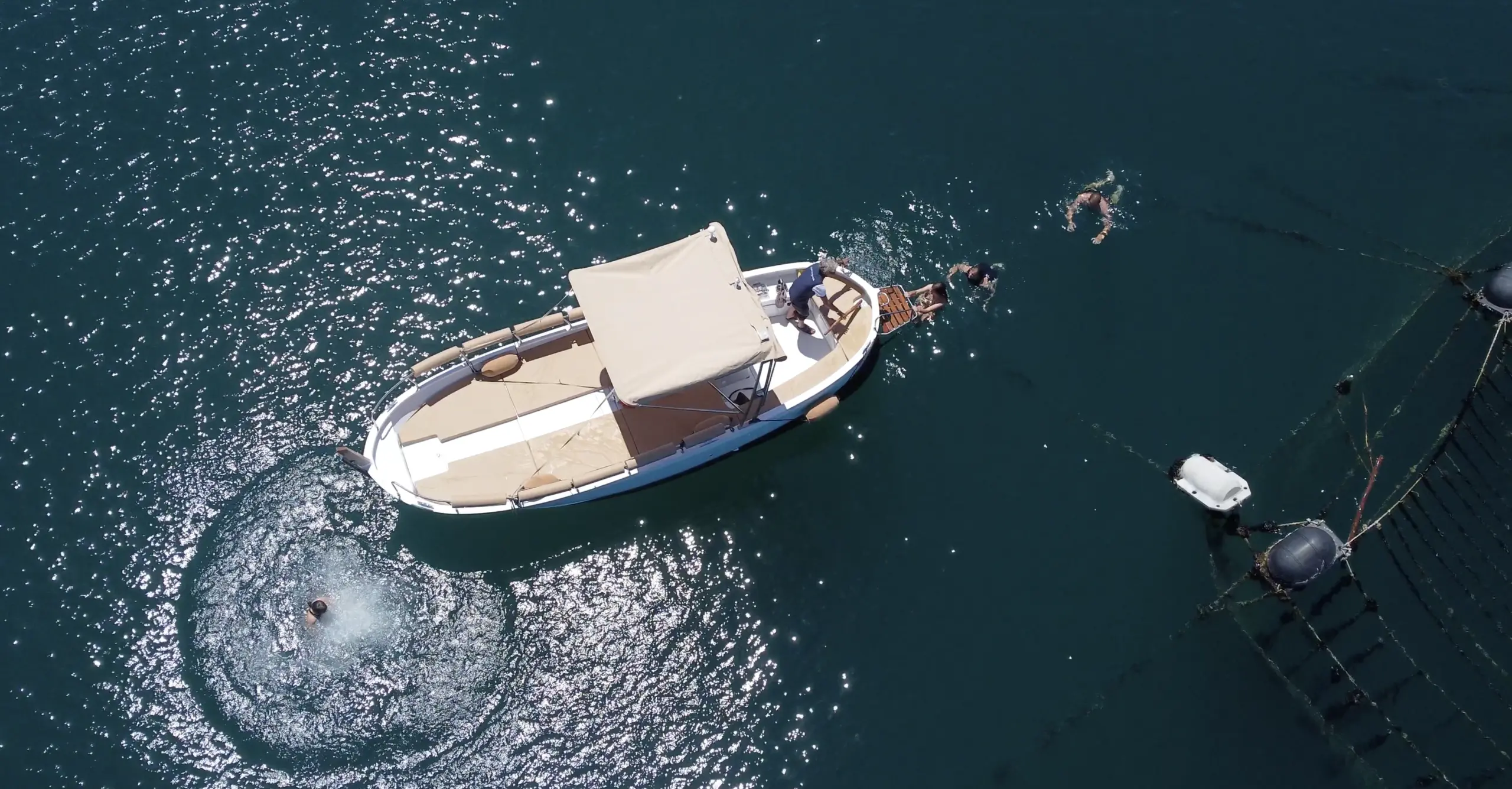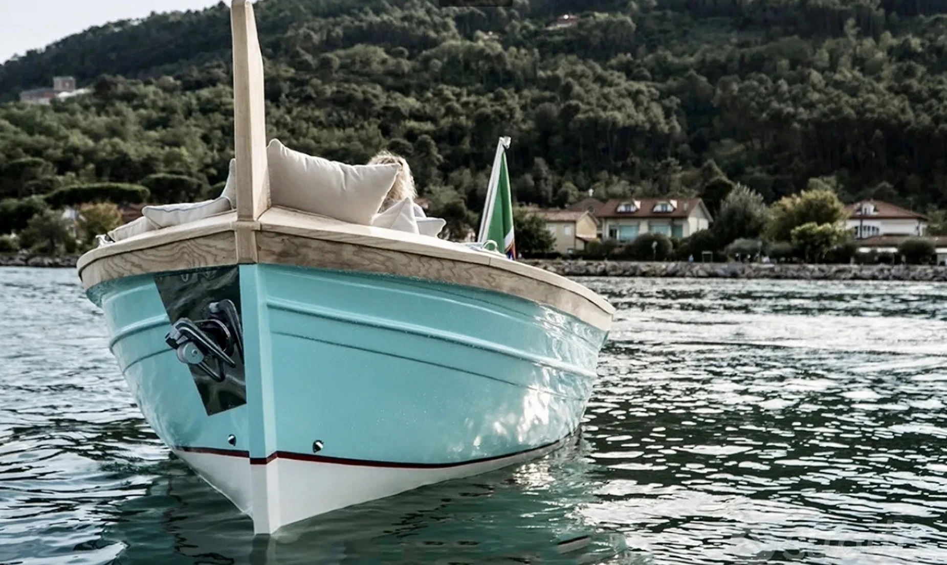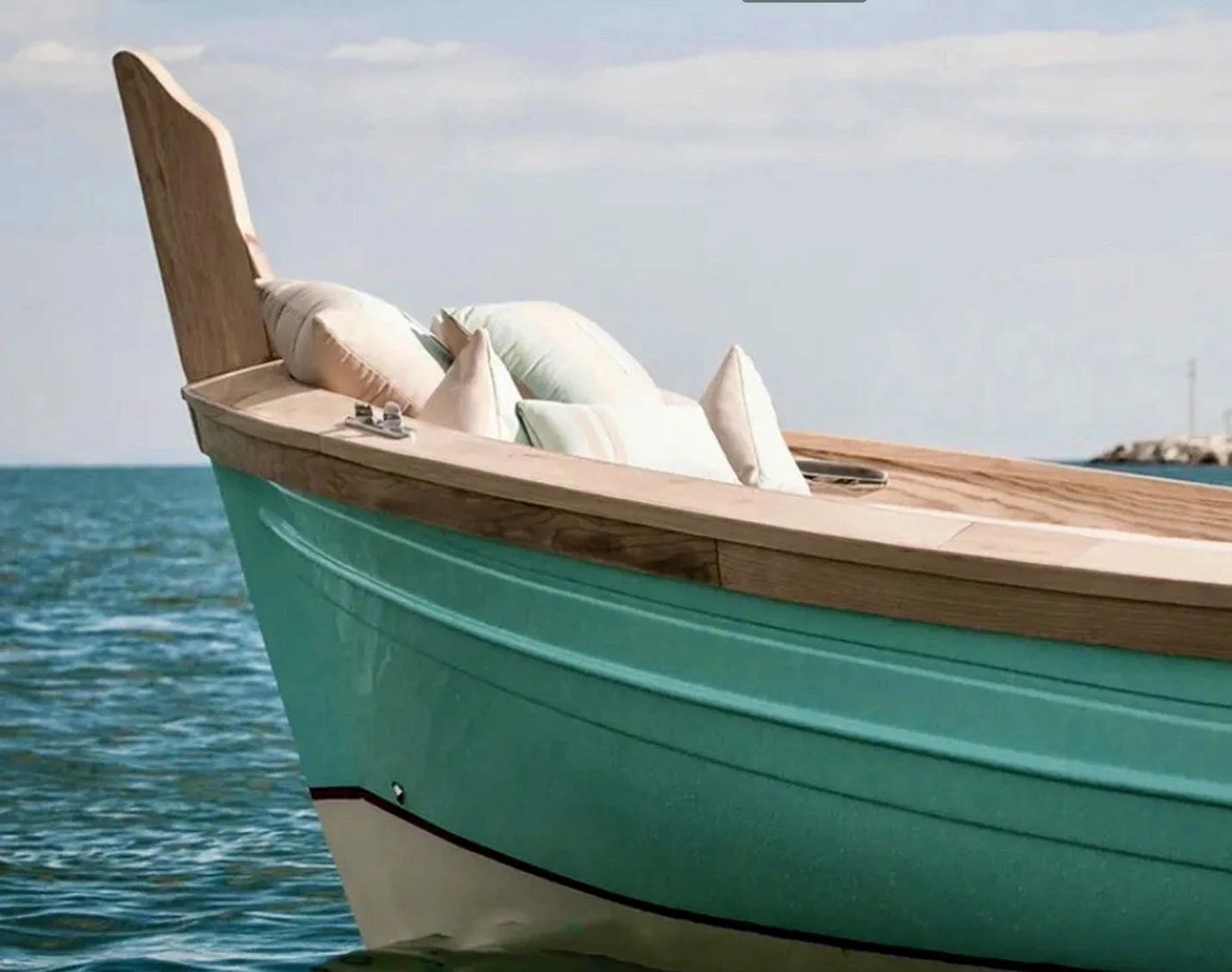 This eco-friendly boat blends the classic charm of a traditional gozzo with modern comfort, featuring a spacious open deck ideal for lounging, coastline viewing, and exploring hidden coves. With additional bench seating and a fixed sunshade, it offers a relaxed and comfortable experience on the water.