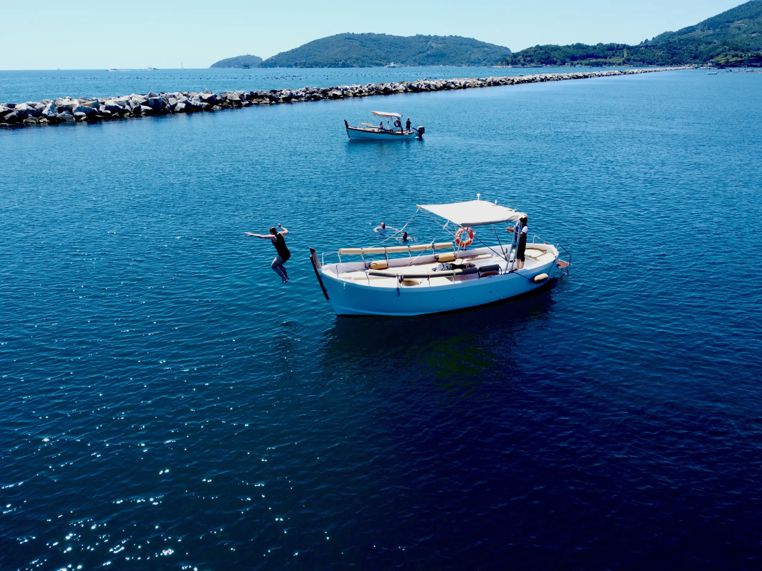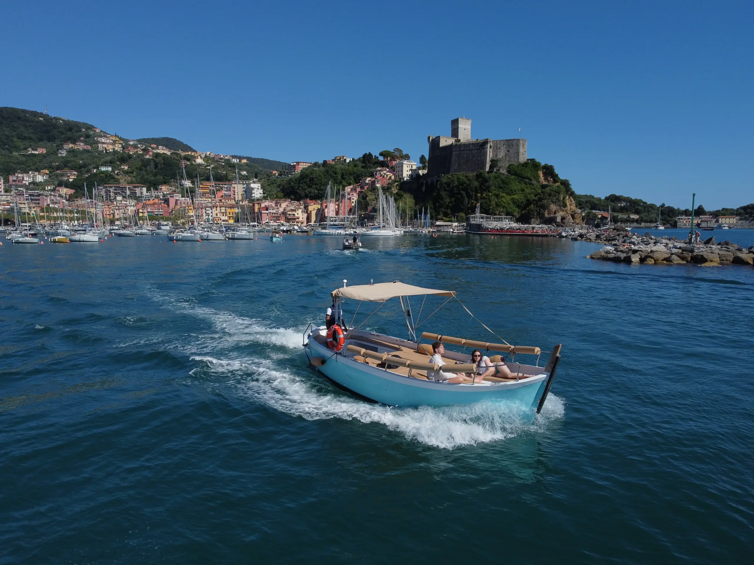 This modern, versatile boat offers spacious open areas ideal for small groups, creating a comfortable setting for families, friends, and travelers who want to enjoy the Cinque Terre coastline together. Its design makes it easy to move around, relax, and take in the views as you explore the villages and hidden coves along the coast.